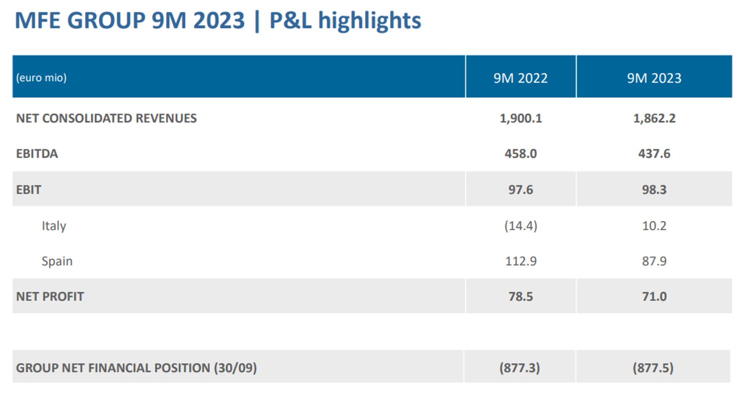 L'indebitamento finanziario netto consolidato è rimasto stabile a 877,5 milioni, nonostante gli investimenti significativi per lo sviluppo in Spagna e Germania per un totale di 145,9 milioni, oltre alla remunerazione degli azionisti, che ha comportato una distribuzione di dividendi MFE pari a 140 milioni nel mese di luglio.