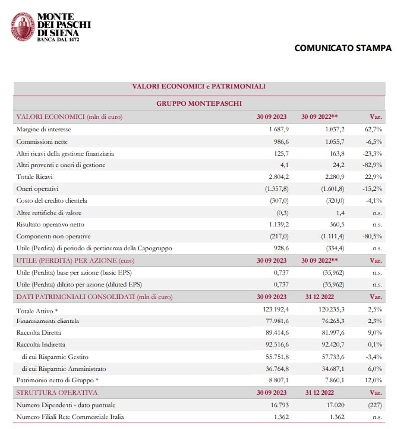 Per la banca di Rocca Salimbeni si tratta del quarto trimestre consecutivo in utile e risulta superiore alle attese del consenso degli analisti.