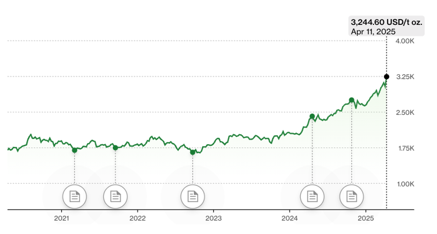 Le due banche hanno ritoccato le loro previsioni dopo che l'oro è salito del 6,6% la scorsa settimana, segnalando un forte consenso rialzista sul metallo in un contesto di incertezza, dato che le politiche commerciali del presidente Usa Donald Trump stanno facendo vacillare i mercati globali.