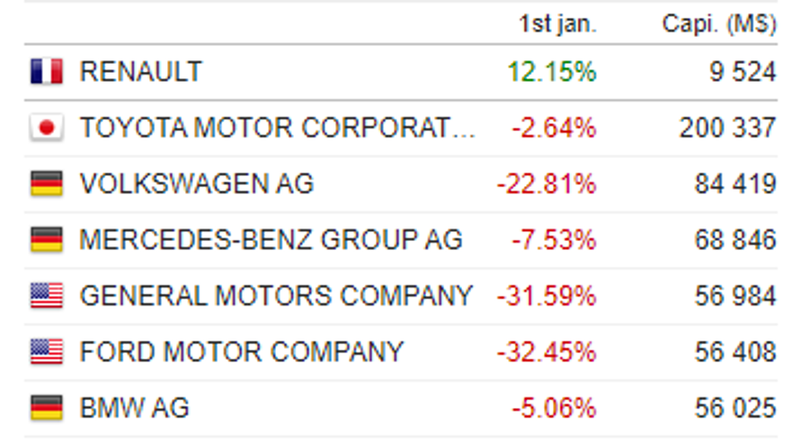 Renault vanta una delle migliori performance di Borsa dall’inizio del 2022 all’interno del settore automotive, con un rialzo del 12%.